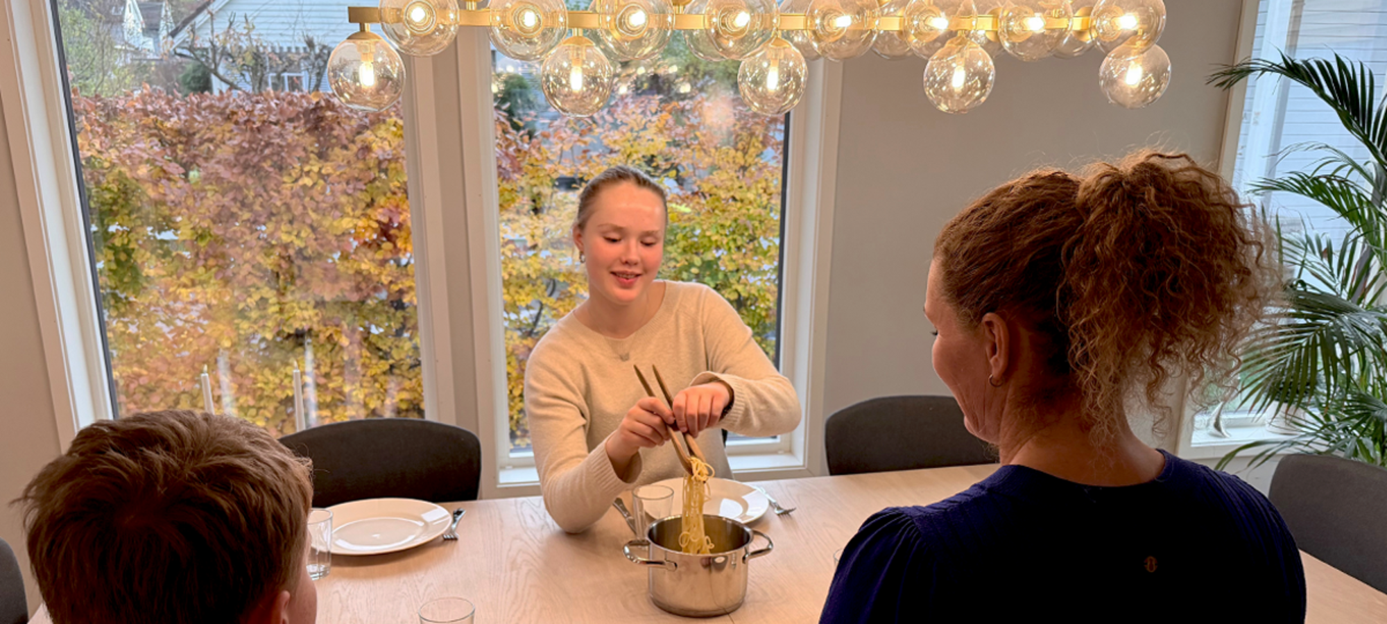 Hjemme hos familien Ormstad står det ofte pasta på menyen. Hjemmelaget bolognese er favoritten, mens carbonara og lasagne følger hakk i hæl.