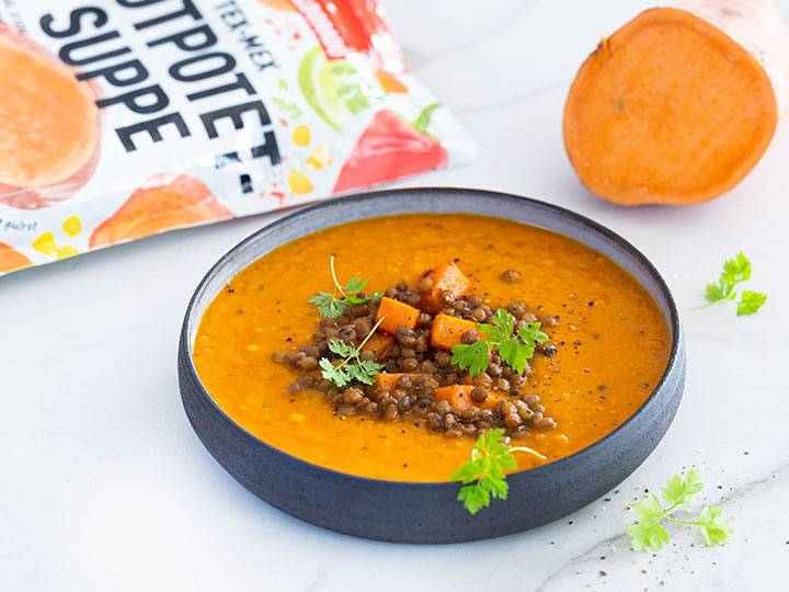 Søtpotetsuppe med linser