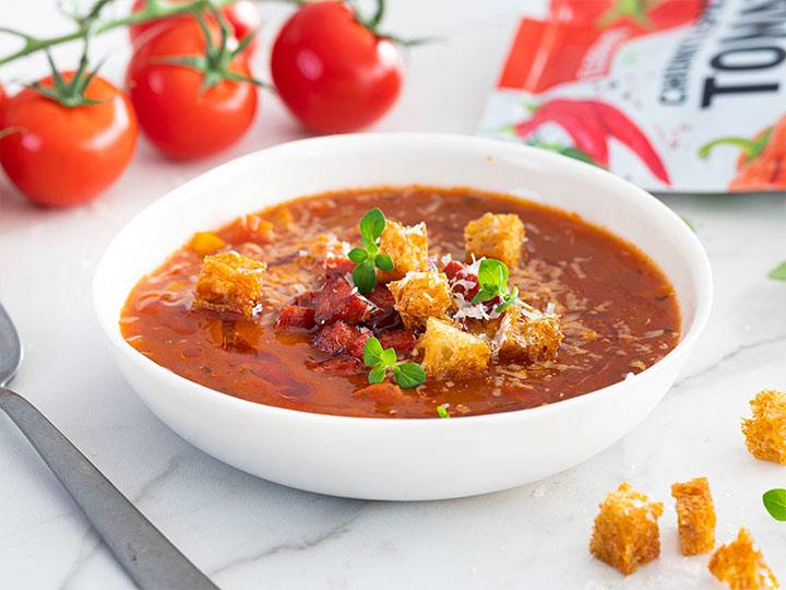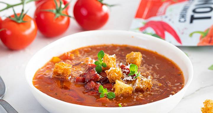 Tomatsuppe med stekt chorizo